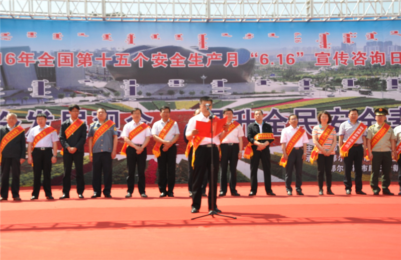 6月16日上午,鄂尔多斯市农牧水务投资有限公司组织安全工作相关人员参加了“强化安全生产发展观念,提升全民安全素质”为主题的安全生产宣传消防演练日活动。全面了解了安全生产的意义,观看了安全生产相关演出活动和消防灭火、煤气气罐起火灭火演练,充分学习消防队工作人员就灭火、逃生、救援等相关安全知识,了解并掌握了灭火方法,学会使用各种消防设施及工具。