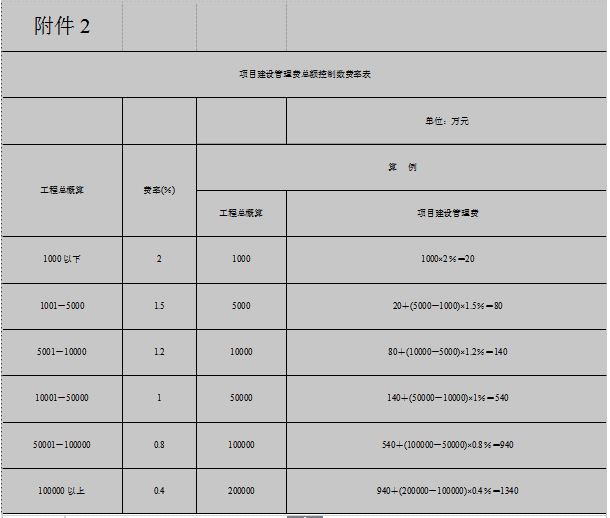 2.项目建设管理费总额控制数费率表