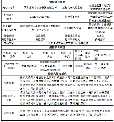 内蒙古鄂尔多斯市哈头才当至康巴什供水工程第三方工程质量检测招标公告