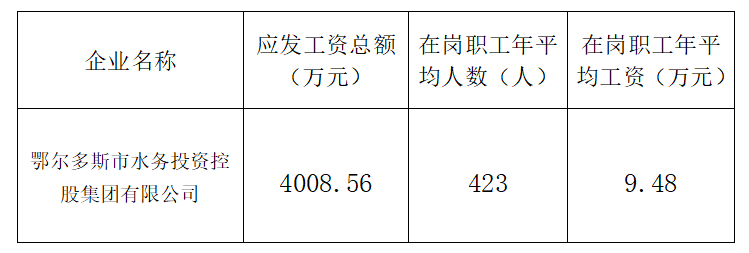现将鄂尔多斯市水务投资控股集团有限公司2021年度工资总额信息披露如下: