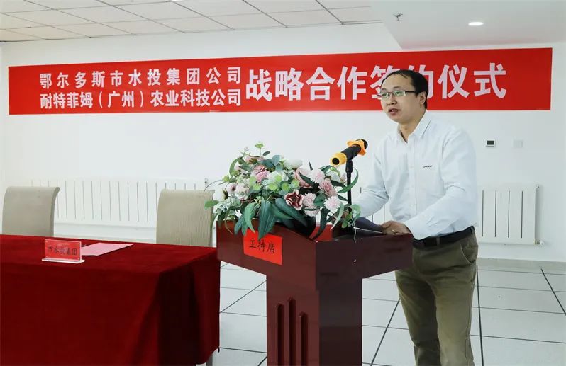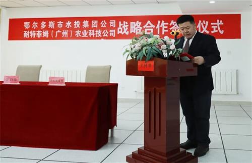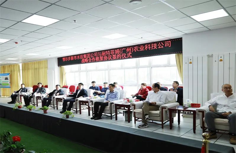 耐特菲姆中国区董事总经理聂宗雨分析了鄂尔多斯农业发展形势,他表示,鄂尔多斯属于缺水地区,农业高效节水利用将是鄂尔多斯农业发展的必然趋势,市水投集团作为从事农业投资的平台公司,在发展理念上和耐特菲姆公司高度契合,耐特菲姆公司将全力协助水投集团,全面推进节水灌溉、设施农业、高标准农田建设,助力鄂尔多斯农业高质量发展。
